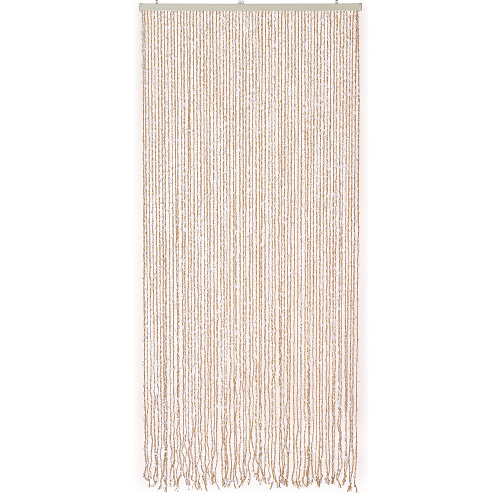 Le rideau de porte Samana Blanc apporte une touche de fraîcheur et de poésie à votre décoration grâce à son design unique mêlant tresses en polyester et délicat feuillage artificiel. | Ce modèle aérien permet de protéger votre intérieur des insectes tout en laissant circuler la lumière et l'air de manière optimale. | Idéal pour créer une ambiance naturelle et apaisante, il s'intègre parfaitement comme séparation de pièces ou pour habiller une porte donnant sur le jardin ou la terrasse. | Sa finition blanche apporte une luminosité immédiate et une élégance sobre qui s'adapte à tous les styles d'aménagement intérieur.