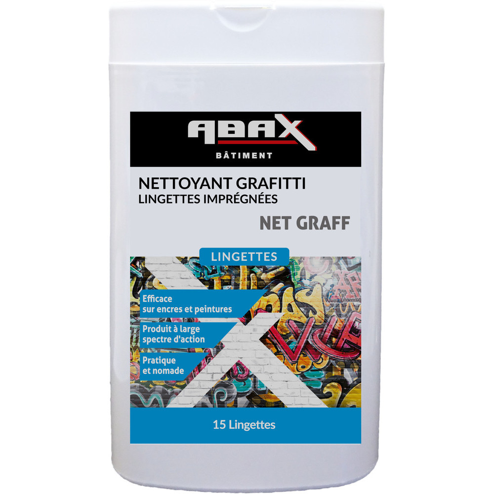 Les lingettes NET GRAFF sont imprégnées dun mélange de solvants spécialement conçu pour éliminer les graffitis, encres, peintures, coups de valise et tags sur les supports fermés. | Efficaces et pratiques, elles sont non agressives pour le verre, le stratifié, les peintures PU/Epoxy et les élastomères. | Idéales pour un nettoyage rapide et ciblé, elles offrent une solution immédiate sans besoin de rinçage complexe.