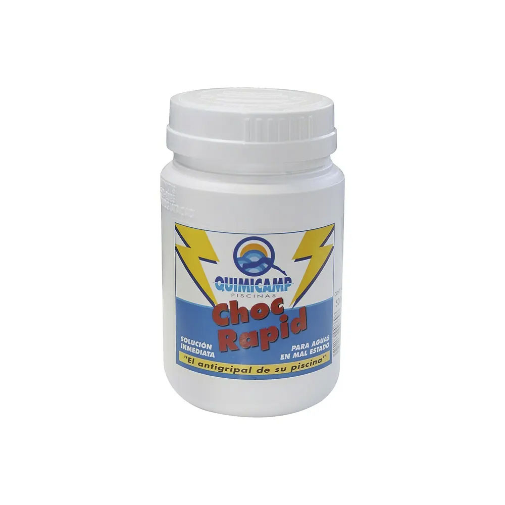 Choc Rapid est un produit chloré à dissolution rapide, spécialement formulé pour résoudre rapidement les problèmes deau verte ou trouble causés par les algues, les bactéries, les champignons et autres micro-organismes. | Son action désinfectante et algicide permet de rétablir rapidement leau de la piscine dans son état optimal. | Il est recommandé dutiliser Choc Rapid en combinaison avec un algicide hautement concentré, pour une efficacité renforcée contre les algues et les contaminants.