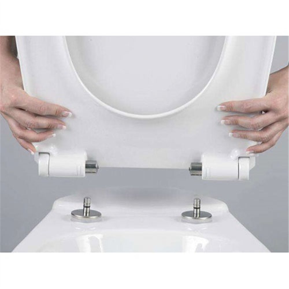 La surface de cet abattant bénéficie d'un traitement antibactérien lisse et sans pores, qui empêche l'accumulation de germes et facilite considérablement le nettoyage. Deux fonctions pratiques complètent cet équipement premium : le frein de chute Soft Close pour une descente en douceur et silencieuse, et le système déclipsable permettant de retirer l'abattant instantanément sans outil pour un entretien en profondeur.