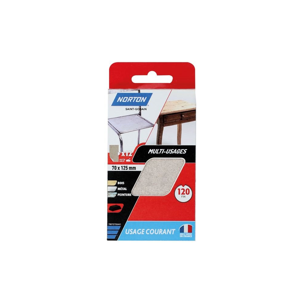 Leur format 70 x 125 mm les rend directement utilisables sur les cales à pinces compatibles, tout en restant maniables à la main pour les retouches sur angles, moulures ou petites surfaces. Leur polyvalence en fait un incontournable de la boîte à outils de tout bricoleur soigneux.