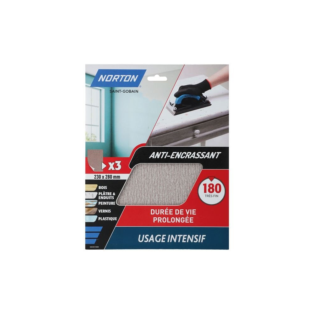 Pour obtenir une finition impeccable sur vos travaux de ponçage, les feuilles abrasives anti-encrassantes Norton grain 180 s'imposent comme une référence incontournable. Ce lot de 3 feuilles au grain 180, destiné à la super finition, permet d'éliminer les dernières traces de ponçage grossier et d'obtenir un état de surface lisse, prêt à recevoir une peinture, un vernis ou une lasure.