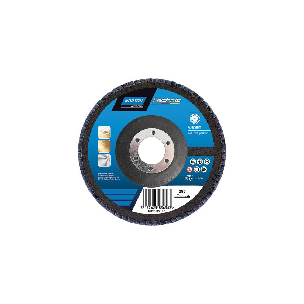 La technologie grain Norzon propre à Norton assure une coupe franche et homogène sur l'ensemble de la vie du disque. La forme convexe des lamelles favorise un contact progressif avec la matière, limitant les risques de griffures trop prononcées tout en maintenant un enlèvement de matière efficace.