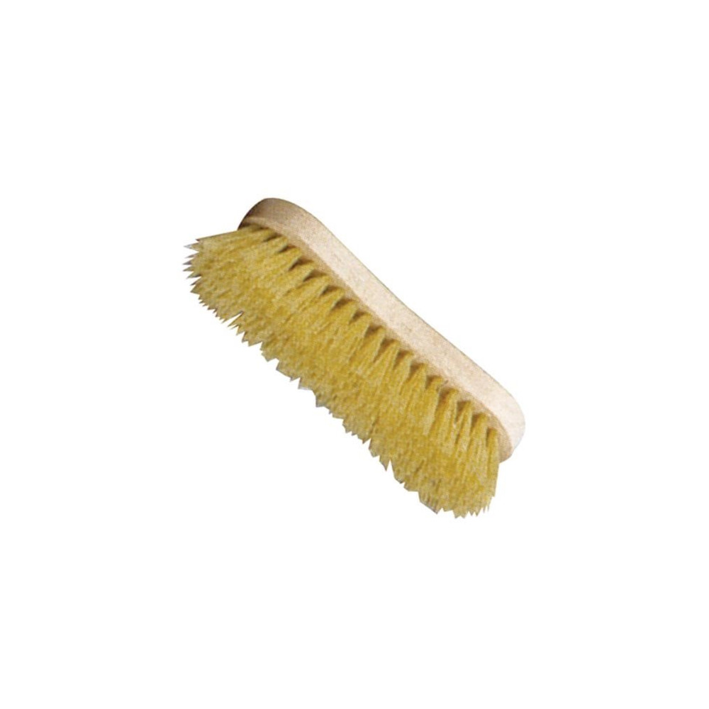 Sa monture en bois brut robuste mesure 180 x 55 x 18 mm, pour des dimensions totales de 180 x 55 x 50 mm. Elle est équipée de fibres en polypropylène jaune d'un diamètre de 0,55 mm, un matériau synthétique reconnu pour sa résistance à l'humidité, aux détergents et aux produits ménagers courants. Son poids contenu de 130 g garantit une utilisation sans fatigue prolongée.