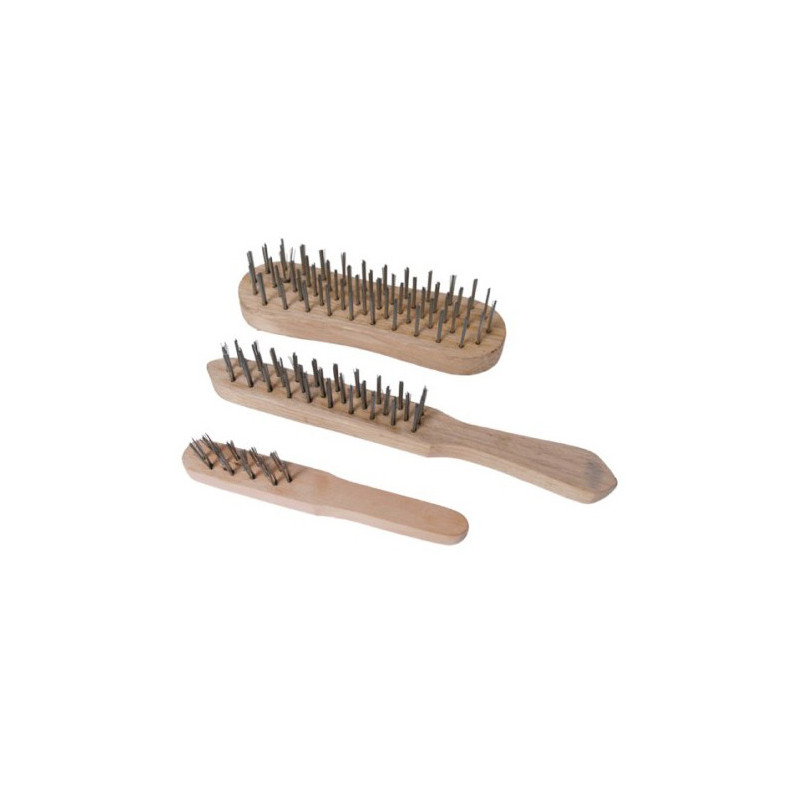 La diversité des tailles au sein du lot est un avantage clé : la plus petite brosse excelle dans les recoins et les reliefs fins, la taille intermédiaire couvre les surfaces moyennes avec efficacité, et la grande brosse permet de traiter rapidement les zones étendues. Chaque brosse est dotée de soies métalliques résistantes qui ne s'évasent pas prématurément sous l'effort.