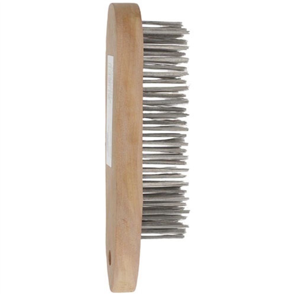 Équipée de fils en acier d'un diamètre de 0,30 mm, cette brosse offre un brossage vigoureux et précis, parfaitement adapté au décapage de l'acier et des surfaces en bois. Le manche en bois garantit une prise en main stable et confortable lors des opérations répétées de brossage manuel. La finesse des fils assure un décapage efficace sans dégrader les arêtes des pièces traitées.