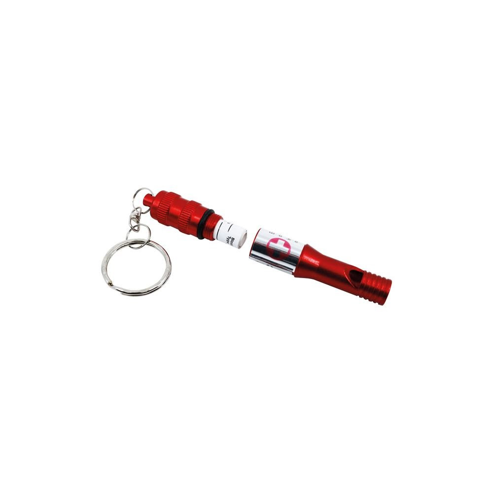 Sa conception sans bille est l'un de ses atouts majeurs : contrairement aux sifflets traditionnels, il fonctionne parfaitement même lorsqu'il est mouillé, trempé ou exposé à des conditions météorologiques défavorables. Il intègre également un compartiment étanche dévissable, permettant d'y glisser une fiche d'identification d'urgence, un numéro de contact ou toute information vitale en cas d'accident.