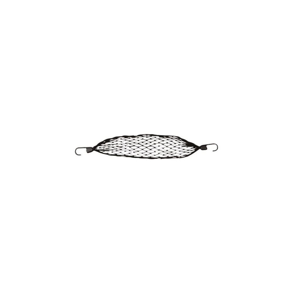 Sandow élastique polypropylène noir 60 cm au repos, extensible à 90 cm. 5 mm. Avec ses deux crochets et son filet élastique, idéal pour maintenir et fixer des bagages ou tout autre accessoire un peu partout.