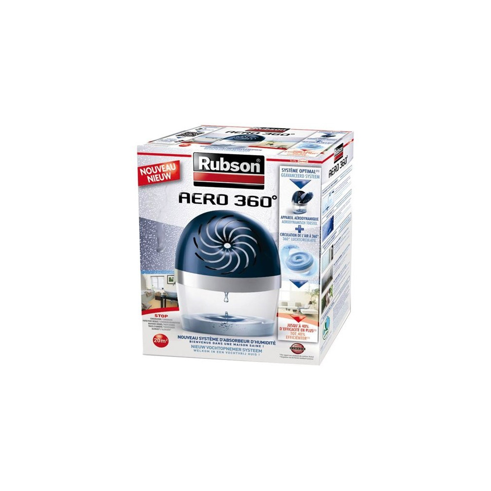 Fruit de la nouvelle technologie AERO 360° de Rubson, l'absorbeur Aéro 360 Stop 20m² repousse les limites de l'absorption d'humidité grâce à une conception entièrement repensée. Ce pack complet inclut l'appareil et une recharge haute performance pour une prise en main immédiate, sans achat supplémentaire.
