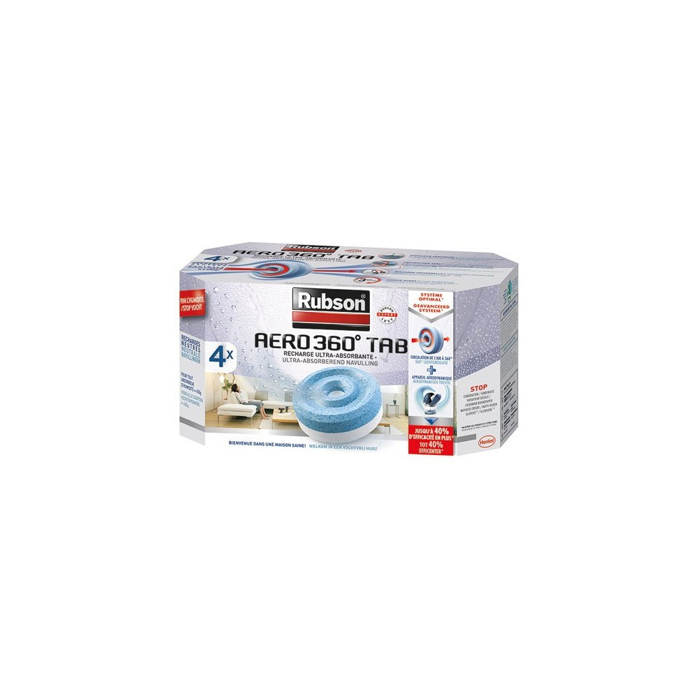 La technologie exclusive AERO 360° repose sur une surface d'exposition à l'air optimisée, ce qui permet une absorption de l'humidité nettement plus rapide et plus efficace qu'une recharge classique de type tabs. Résultat : moins d'humidité résiduelle, moins de condensation sur les parois, et un air intérieur plus sain dès les premiers jours d'utilisation.