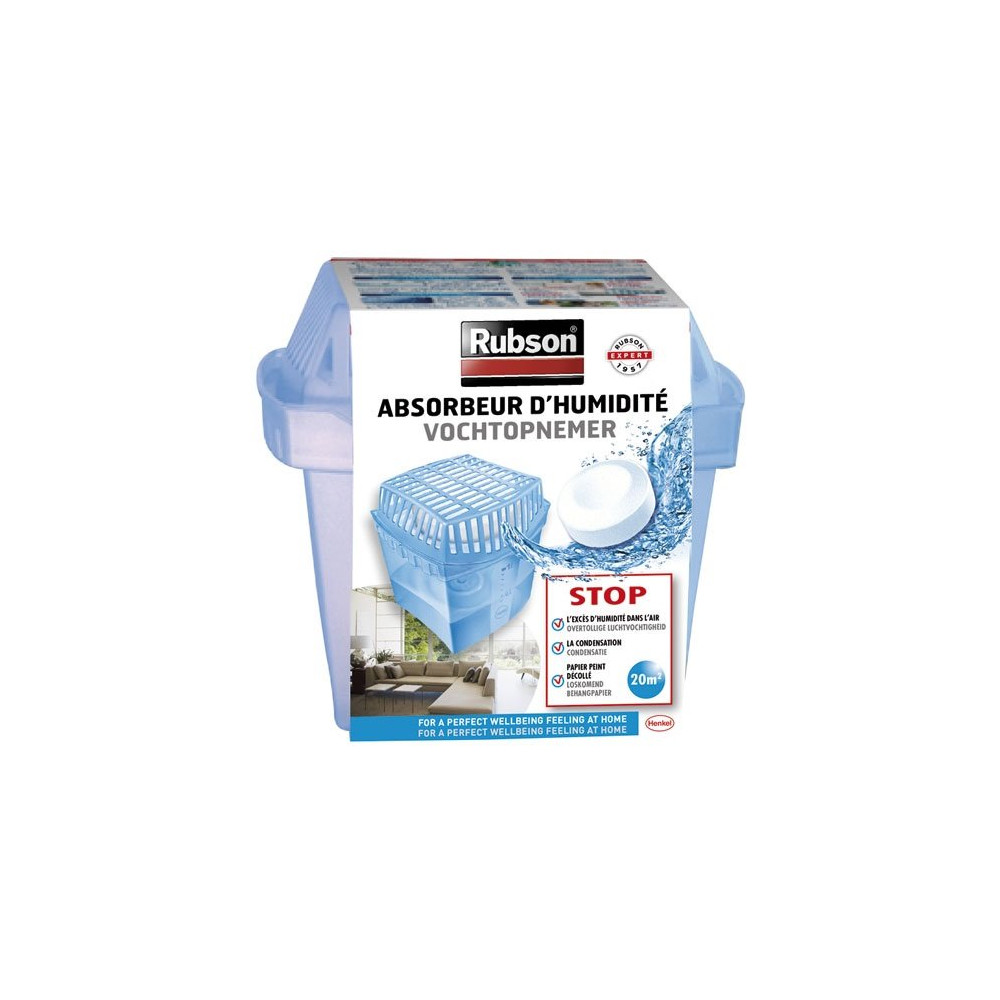Son fonctionnement repose sur une recharge monocouche ultra-absorbante qui capte l'humidité de l'air et la transforme en eau. Simple d'utilisation, il ne nécessite ni branchement, ni pile : il suffit de le poser et de le laisser agir. Lorsque la recharge est épuisée, elle se remplace en quelques secondes avec les recharges compatibles de la gamme Basic et Stop Humidité Rubson.