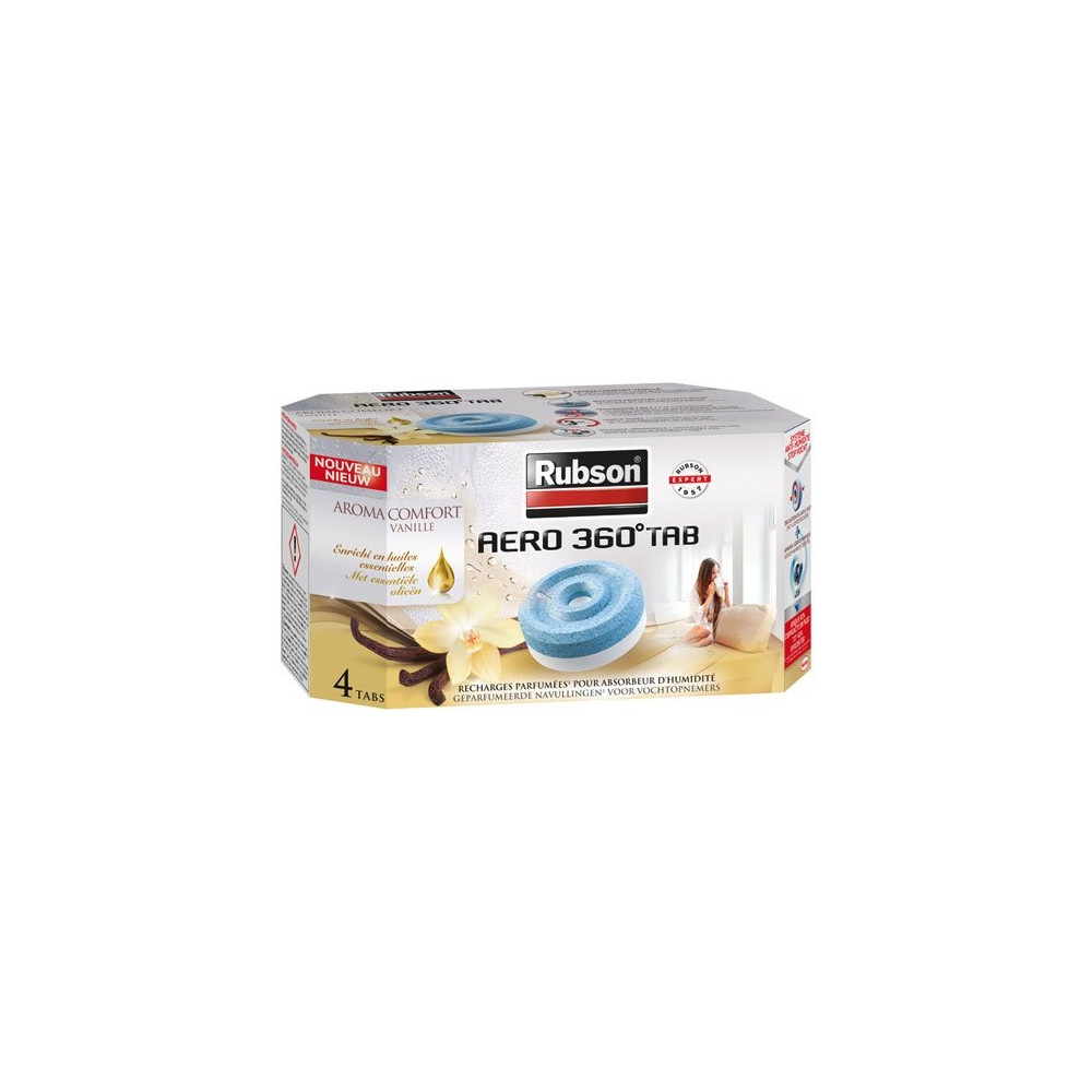 Dites adieu à l'excès d'humidité dans votre intérieur avec la recharge absorbeur Rubson Aéro 360° parfum vanille, vendue par lot de 4 recharges. Spécialement conçues pour l'appareil Rubson Aéro 360°, ces recharges bénéficient de la technologie exclusive Aéro 360° qui absorbe l'humidité sur 360 degrés pour une efficacité maximale dans toute la pièce.