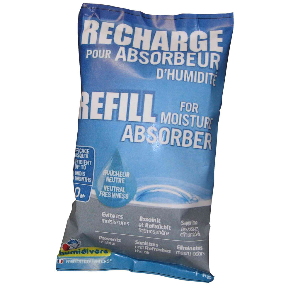 Retrouvez cette recharge HUMIDIVORE 1kg chez Brikoleur pour renouveler simplement votre protection anti-humidité. Pensez à remplacer la recharge dès que les cristaux sont entièrement dissous pour maintenir une efficacité optimale tout au long de la saison humide.