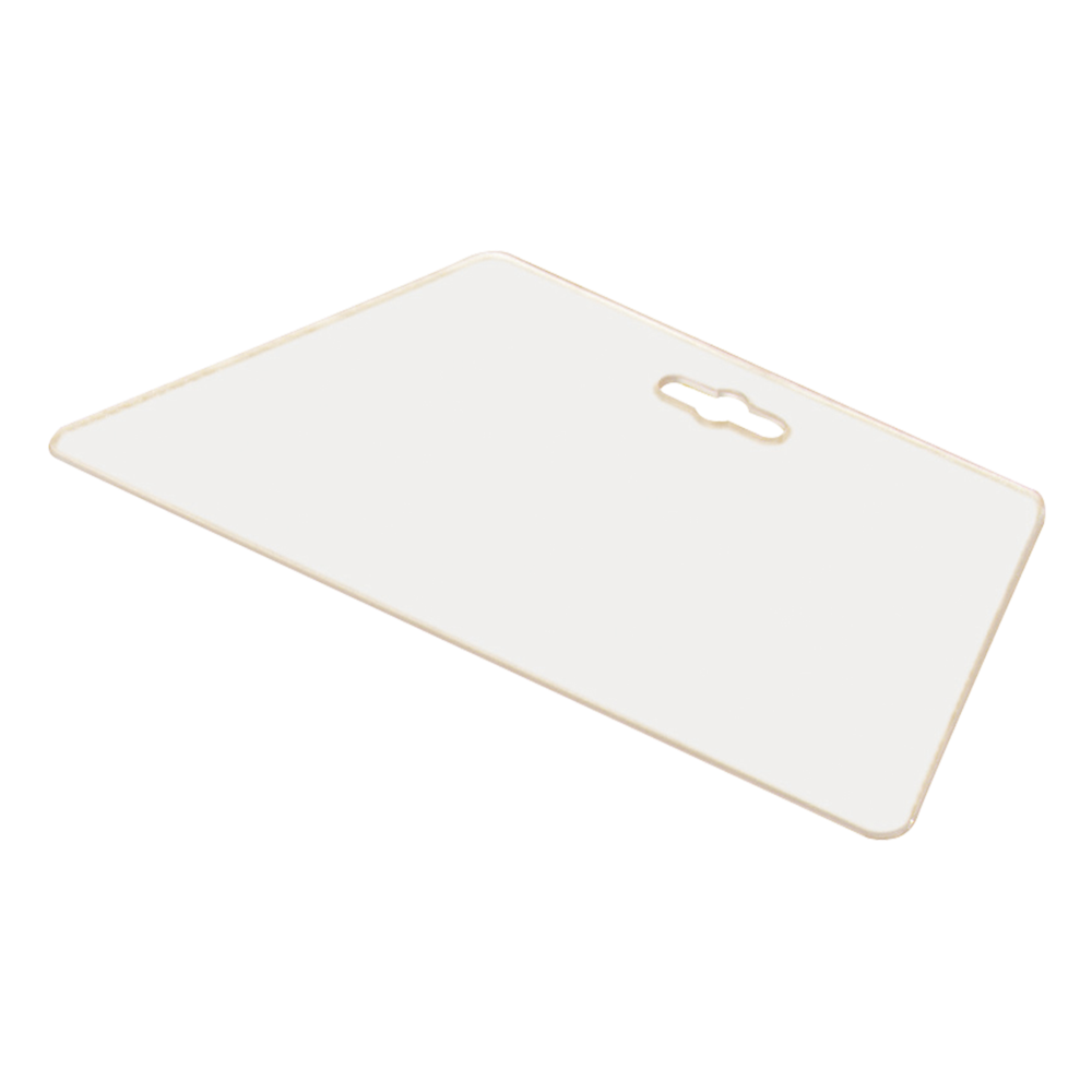 Polyéthylène, rigide, forme trapèze, bords arrondis.