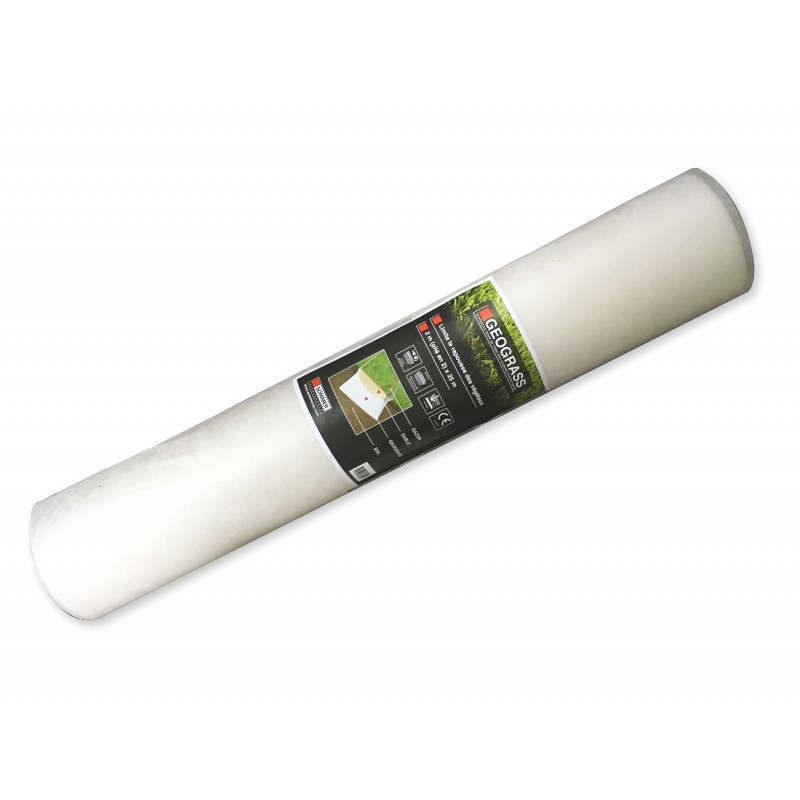 Nappe géotextile conçue pour être installée sous le gazon synthétique, elle permet de limiter la repousse des végétaux indésirables. | De plus, le Géograss est perméable ce qui lui permet de résister aux intempéries tout en n'inondant pas le gazon synthétique. | Livrée pliée en deux, le rouleau a une hauteur de 1 mètre.