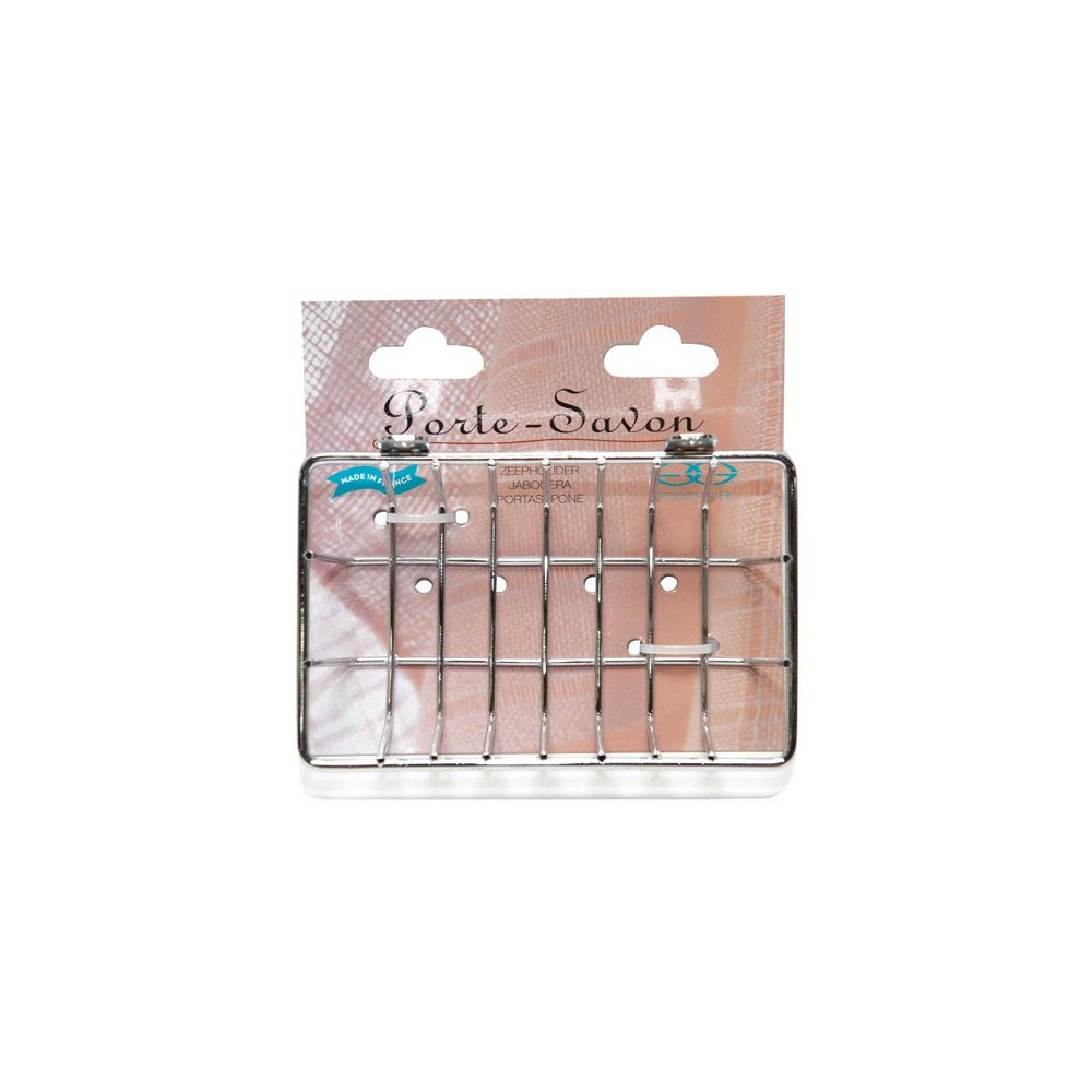 Ses dimensions compactes de 150 x 100 x 40 mm permettent une installation discrète sur n'importe quelle paroi de salle de bains, de douche ou au-dessus d'un plan vasque. La structure en fil d'acier chromé, en plus de son aspect design, présente l'avantage de laisser s'écouler l'eau naturellement, évitant ainsi la stagnation et les dépôts de calcaire sous le savon.