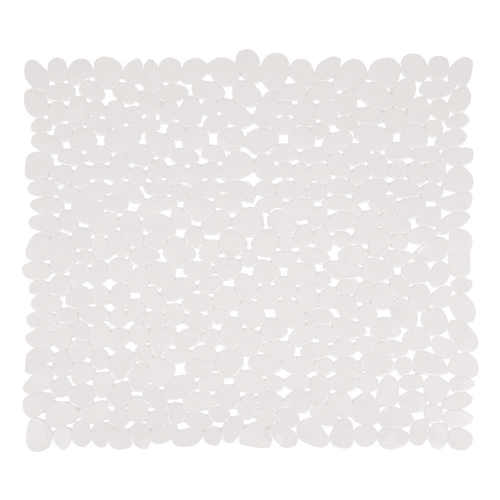 Réalisé en PVC souple blanc, ce tapis bénéficie d'une surface en relief galet qui remplit une double fonction : un effet visuel naturel et une adhérence améliorée sous le pied mouillé. Sa couleur blanche lumineuse s'harmonise idéalement avec les receveurs blancs ou les carrelages clairs et apporte de la fraîcheur à votre espace douche. Le PVC souple lui permet de s'adapter légèrement aux irrégularités de surface.