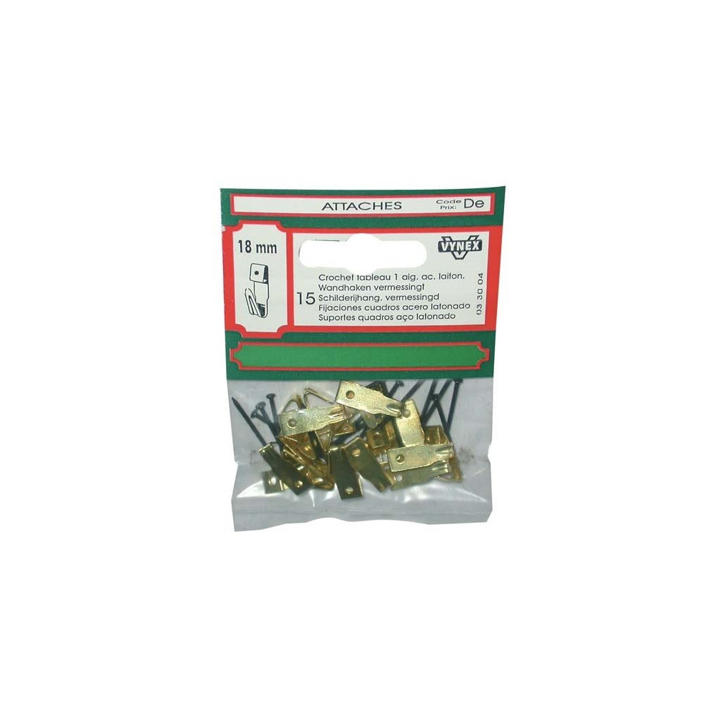 Les crochets tableau laitonné VYNEX, compatibles avec des cadres et tableaux dont les lattes font 18, 21 ou 30 mm, sont la solution idéale pour suspendre tableaux, miroirs et cadres muraux de façon sûre et esthétique. Livrés en lot de 4 crochets, ils permettent d'équiper plusieurs œuvres à la fois ou d'assurer une double accroche sécurisée pour les formats plus lourds.