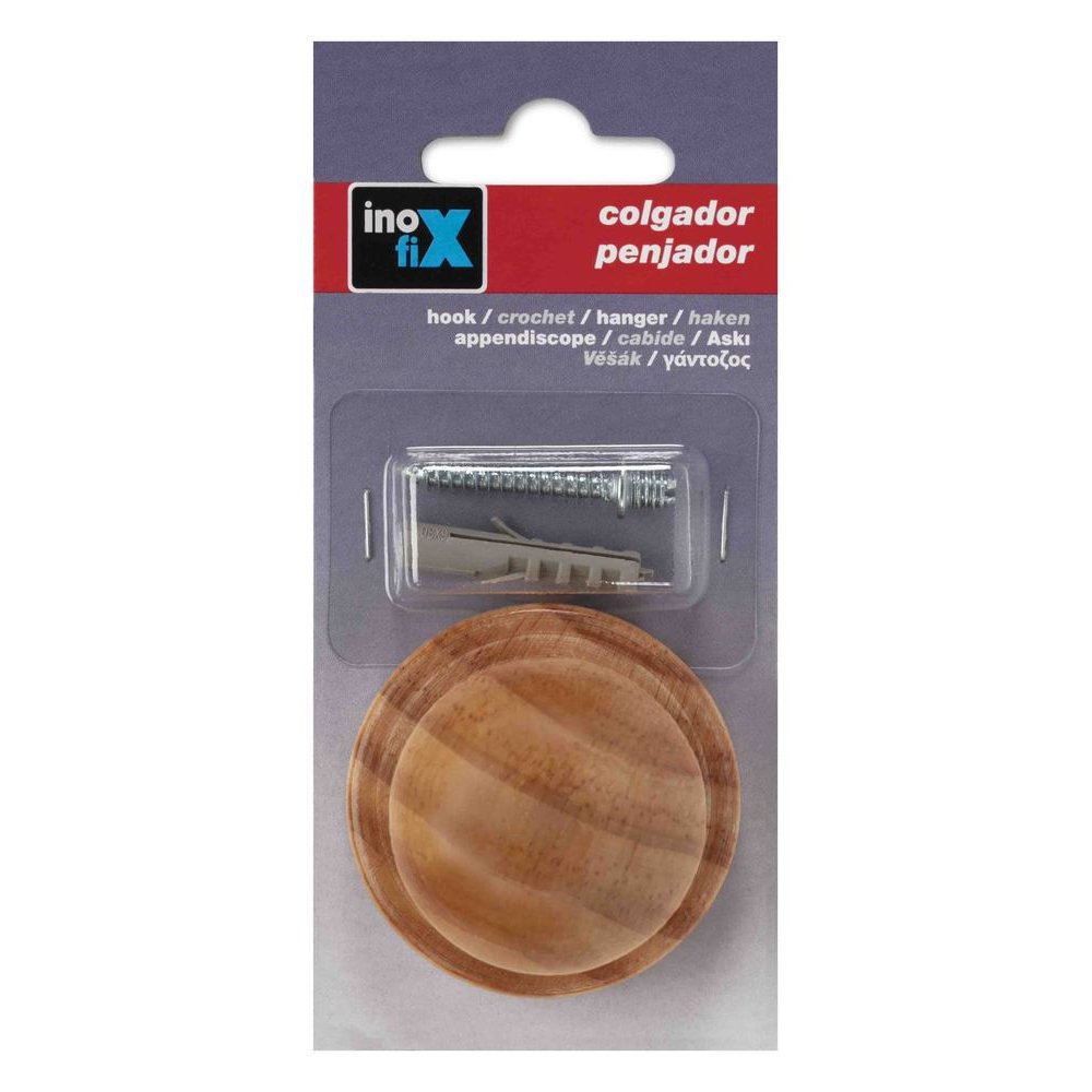 Compact et bien proportionné, il se compose d'une base de Ø 50 mm assurant une fixation murale stable, et d'un bouton de tête de Ø 38 mm soigneusement arrondi pour ne pas abîmer les vêtements et faciliter le décrochage. La finition en bois offre une résistance suffisante pour supporter manteaux, vestes et sacs au quotidien.