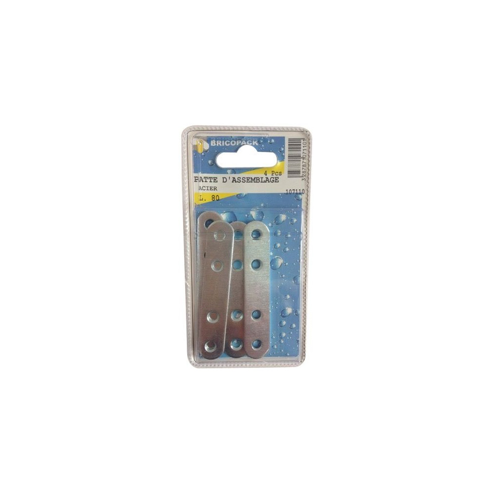 La patte d'assemblage 80 mm en acier BRICOPACK, vendue en blister de 4 pièces, est un accessoire de menuiserie et de charpente incontournable pour solidariser des pièces de bois ou de métal entre elles. Que ce soit pour un projet de construction, d'agencement ou de réparation, cette patte de 80 mm apporte la rigidité structurelle nécessaire à des assemblages durables.