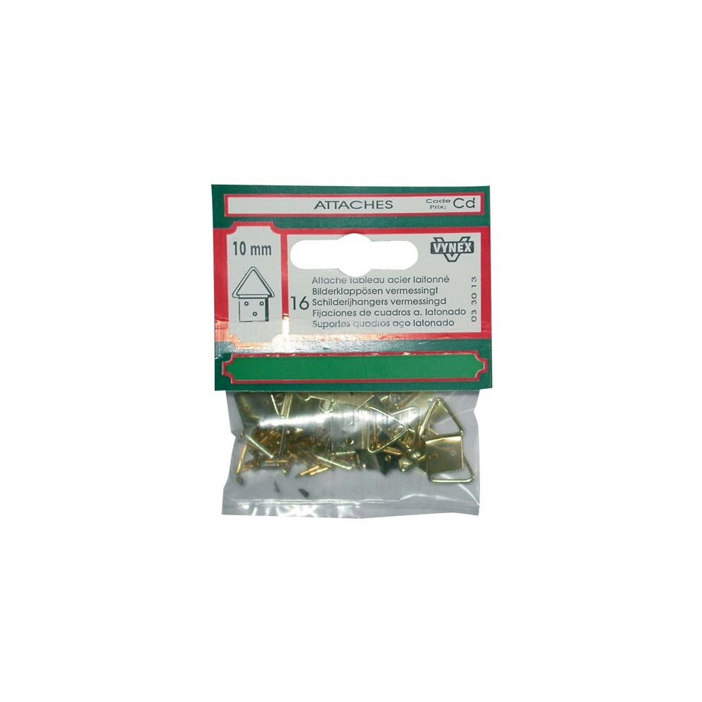 L'attache tableau triangle laitonné VYNEX 14 mm est la solution discrète et fiable pour accrocher vos cadres et tableaux en toute sécurité. Fabriquée en acier laitonné, elle offre une résistance solide tout en arborant une finition dorée élégante qui se fond parfaitement dans l'environnement de vos œuvres et décorations murales.