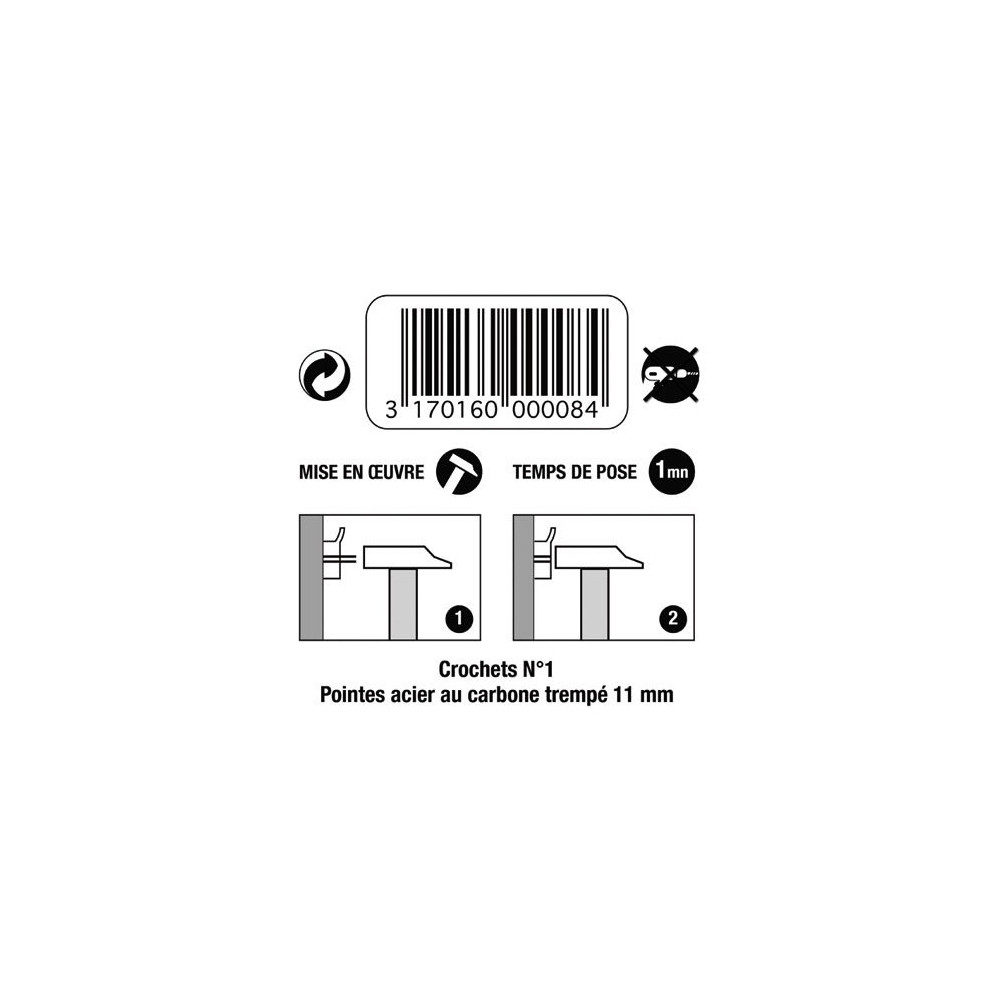 Idéal pour les petits cadres photo, les tableautins légers ou les décorations murales, ce crochet se pose en quelques secondes à l'aide d'un simple marteau. Pas besoin de perceuse, de cheville ou d'outillage particulier : c'est l'accrochage mural sans contrainte. Retrouvez toute la gamme Le Crochet Français ainsi que d'autres solutions de fixation chez Brikoleur.