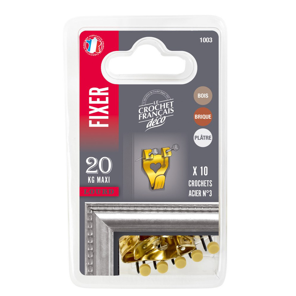 Pour accrocher vos tableaux et cadres en toute sécurité et sans vous compliquer la vie, les crochets pour tableau N°3 de Le Crochet Français représentent une solution fiable et éprouvée. Ce lot de 10 crochets est conçu pour les poses murales nécessitant une charge maximale de 20 kg, ce qui en fait un choix adapté à la grande majorité des tableaux, miroirs encadrés et œuvres d'art du quotidien.