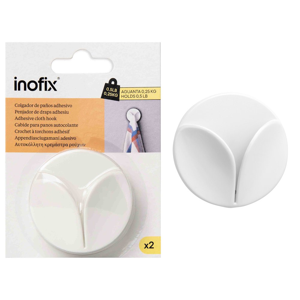 Optimisez l'organisation de votre cuisine ou salle de bain avec l'accroche torchon adhésive blanche INOFIX, vendue en blister de 2. Ce modèle compact permet de suspendre facilement torchons, lavettes ou petits textiles de maison, pour garder vos espaces propres et bien rangés au quotidien. Son coloris blanc universel se fond parfaitement dans tout type de décor.
