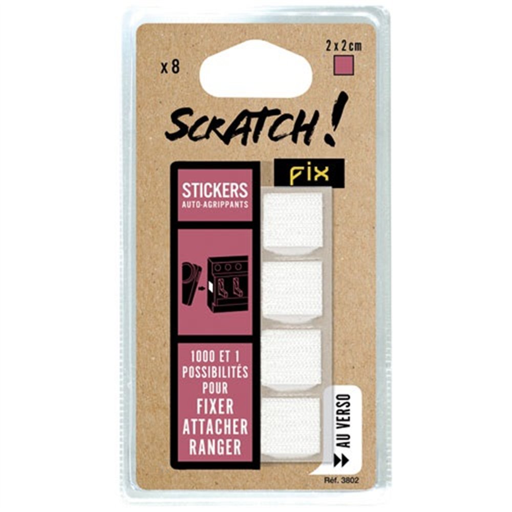 SCRATCH FIX - Carré adhésif scratch blanc 20mx20mm blister de 8