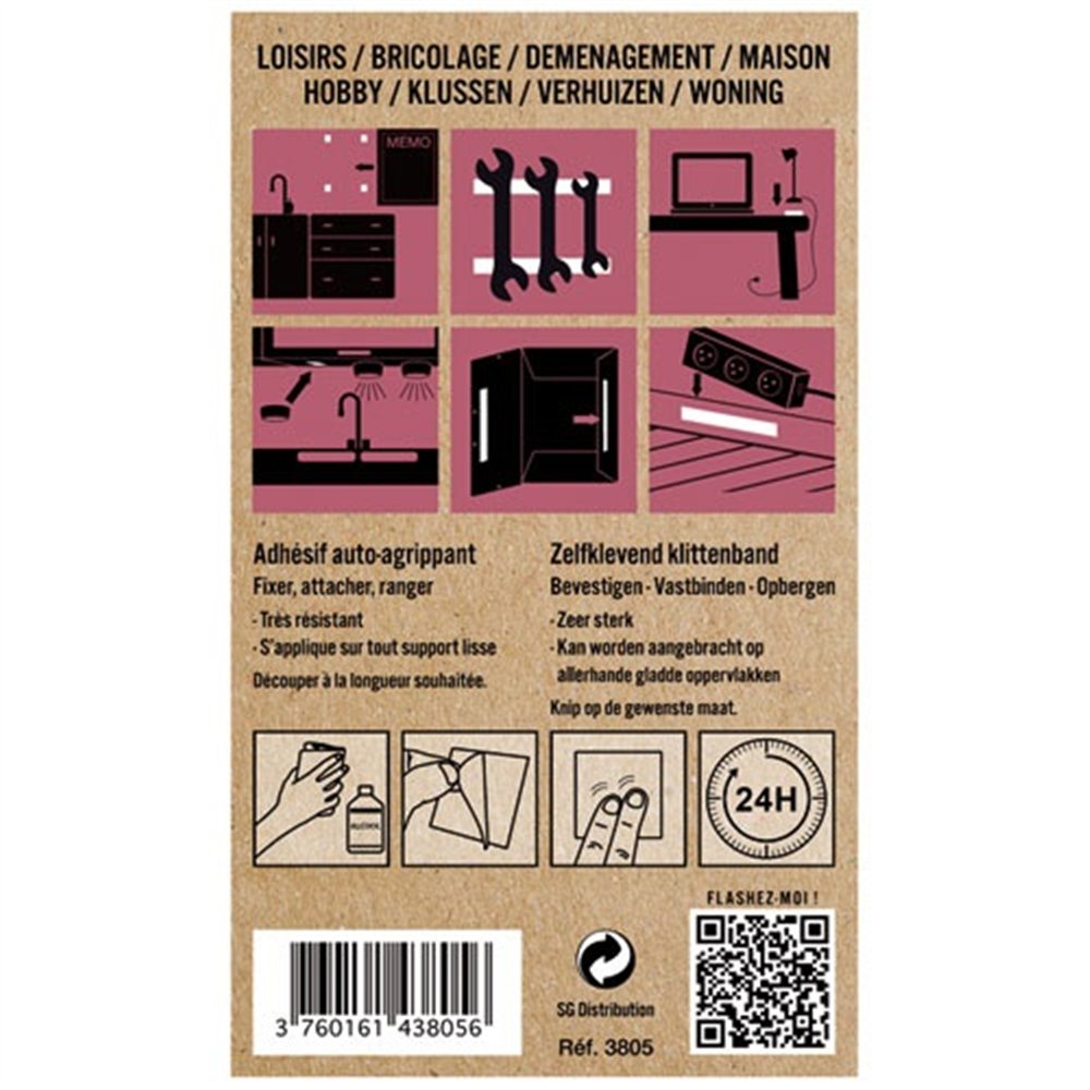 Les usages sont quasi illimités : bricolage, loisirs créatifs, rangement, organisation de câbles, fixation de décorations, accrochage de panneaux légers… Cette bande scratch noire évite les perçages inutiles et s'adapte aussi bien à un usage domestique que dans un atelier ou un espace de loisirs.
