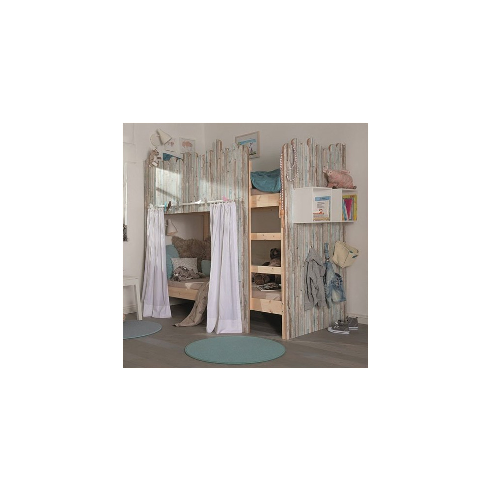 Le motif Rio Ocean se prête aussi bien à la rénovation d'une cuisine qu'à la personnalisation d'une commode ou d'une étagère dans une chambre d'enfant ou une salle de bain. Sa teinte aux reflets bleus et gris évoque le bois flotté et s'associe harmonieusement avec des accessoires naturels ou blancs.