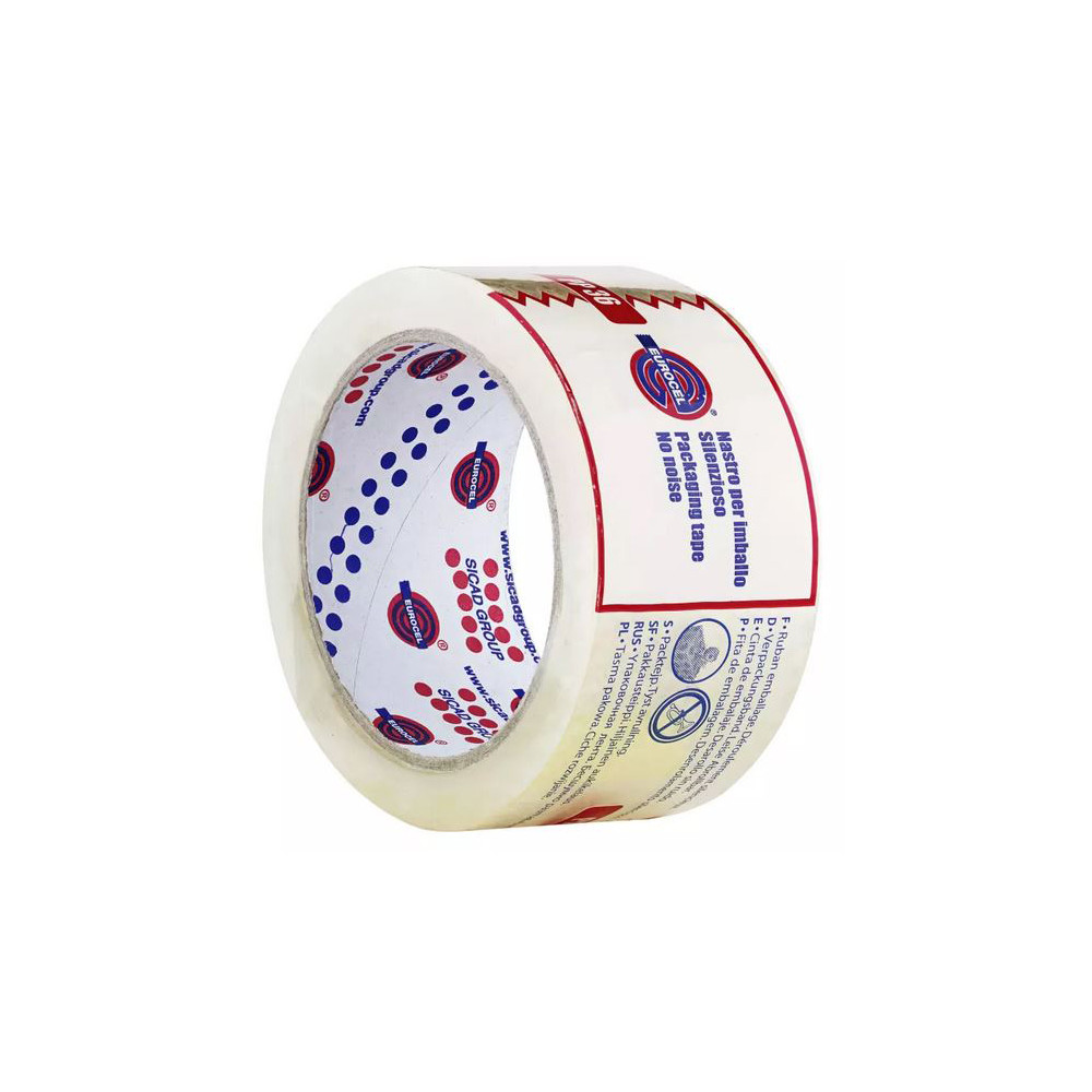 Le ruban d'emballage transparent Eurocel en polypropylène au format 50 mm x 66 m est conçu pour répondre aux exigences des particuliers comme des professionnels en matière de conditionnement et d'expédition. Sa grande longueur de 66 mètres en fait un choix économique et pratique pour sceller un grand nombre de colis sans interruption.