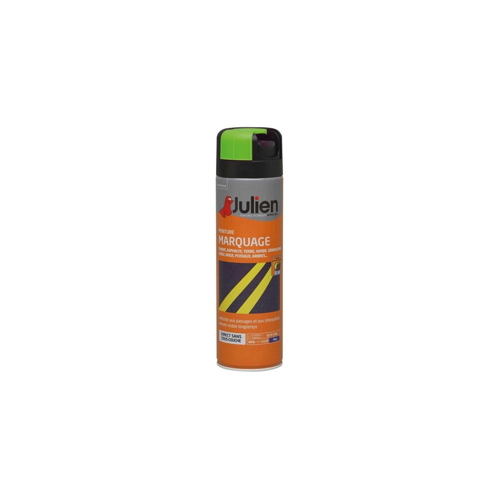 Retrouvez cette bombe peinture marquage vert fluo JULIEN parmi la large sélection de produits de traçage et signalétique disponibles sur Brikoleur. Pour un résultat durable, agitez bien la bombe avant usage et appliquez par passes croisées à environ 30-40 cm du support. Conservez-la à l'abri du gel et des sources de chaleur.