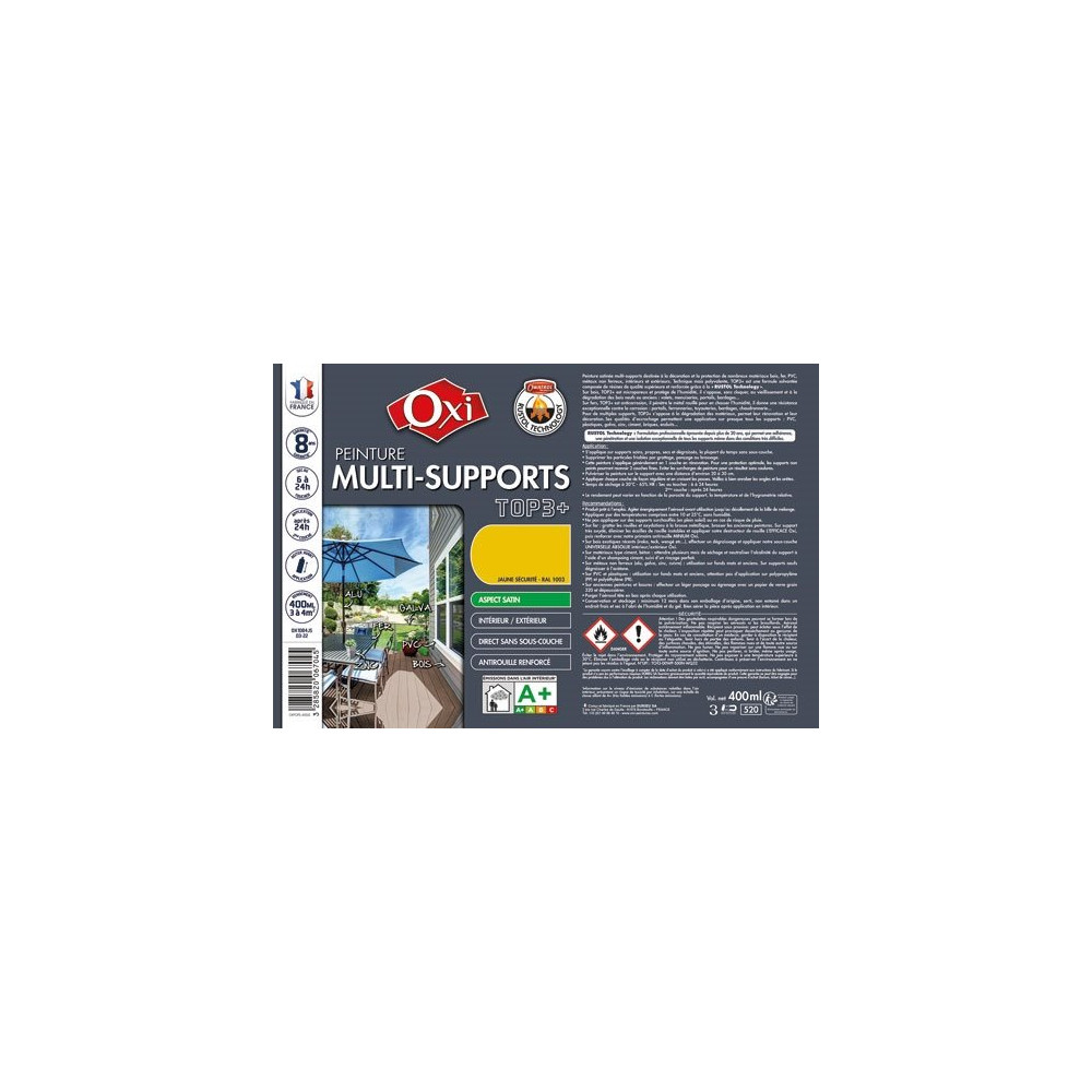 OXI - Peinture top 3 multi supports satin 400ml jaune sécurité