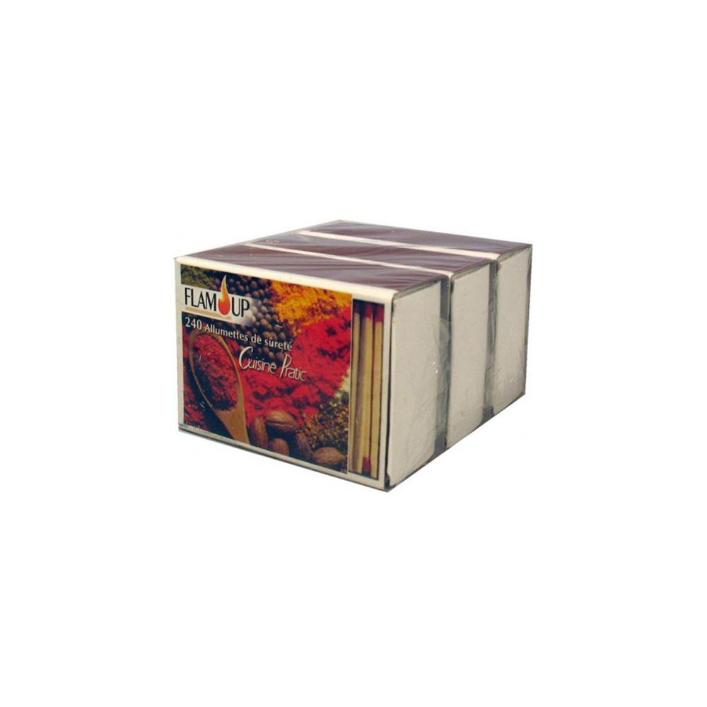 Pratiques et toujours disponibles au bon moment, les allumettes de cuisine Flam Up Pratic se présentent en lot avantageux de 3 boîtes filmées, chacune contenant environ 240 allumettes de 5 cm. Avec ce lot, vous disposez d'un stock confortable pour plusieurs semaines d'utilisation quotidienne, sans jamais être pris au dépourvu.