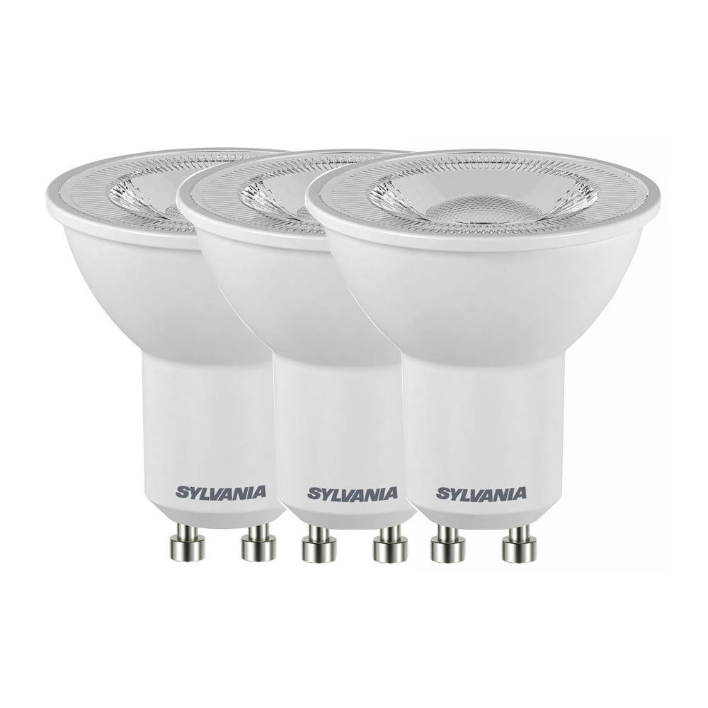 Éclairez vos intérieurs avec efficacité grâce au lot de 3 spots LED GU10 blancs 4,2 W blanc chaud SYLVANIA. Conçus pour remplacer directement vos anciens spots halogènes, ces réflecteurs LED au corps blanc s'intègrent élégamment dans tous les plafonniers et rails d'éclairage à culot GU10, pour une lumière douce et chaleureuse dans chaque pièce.