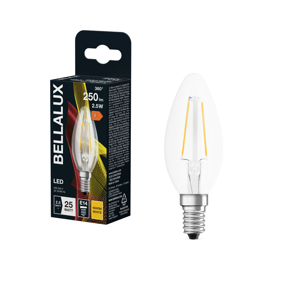 BELLALUX LED CLAIR FLAM E14 2.5W CHAUD (Vendu par 6)