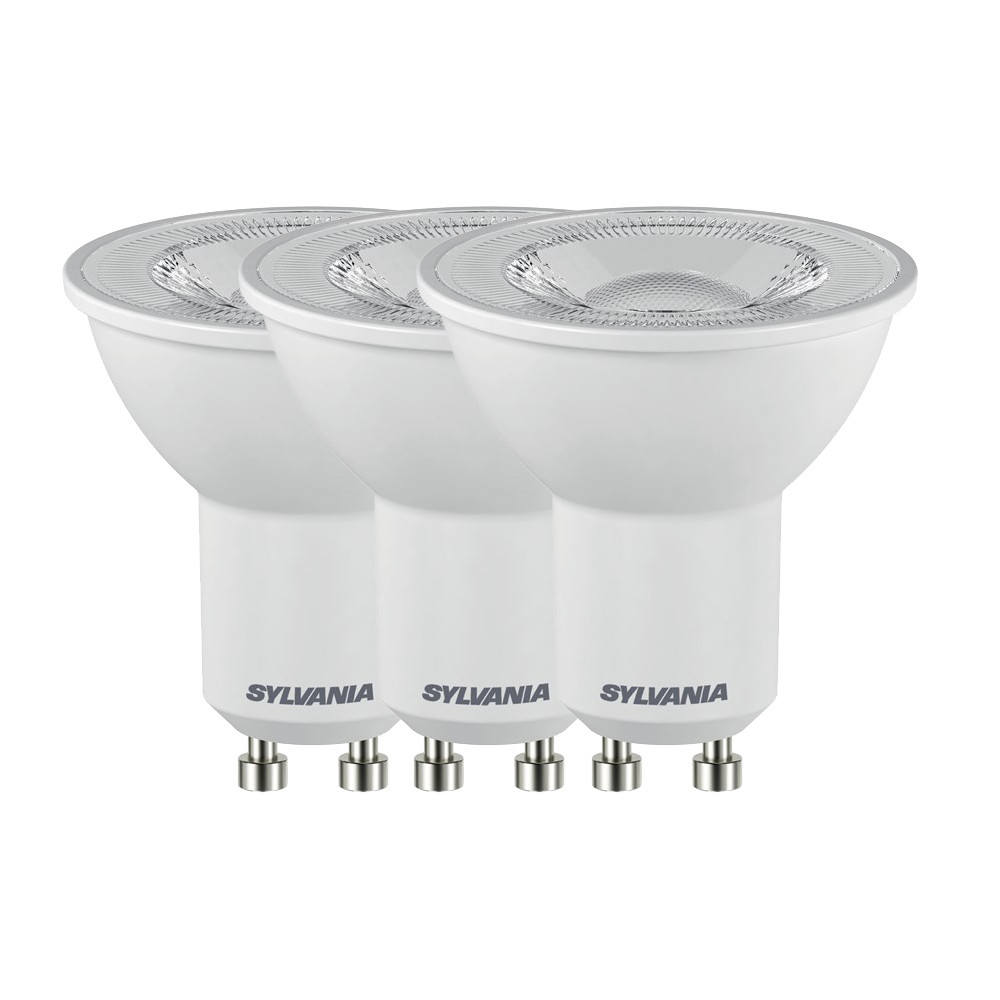 Modernisez votre éclairage avec le lot de 3 spots LED GU10 blanc 4,2W en blanc neutre de SYLVANIA. Ces lampes à réflecteur offrent un excellent rapport entre consommation réduite et qualité d'éclairage, avec 345 lumens par ampoule pour une lumière franche et homogène, proche de la lumière naturelle grâce à leur température de couleur 4000K (blanc neutre).