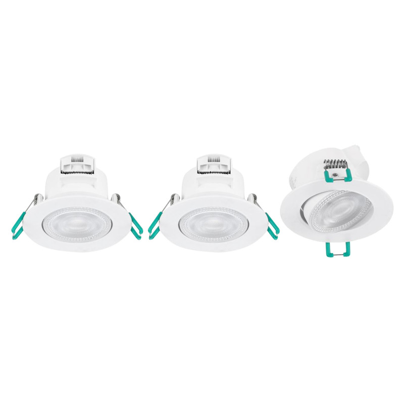 Ce lot de 3 spots encastrés LED SYLVANIA en blanc 5W à lumière blanc chaud est conçu pour apporter une ambiance chaleureuse et une luminosité homogène dans vos pièces de vie. Leur finition blanc RAL9016 s'intègre discrètement dans tous types de plafonds, des cuisines aux séjours en passant par les couloirs.