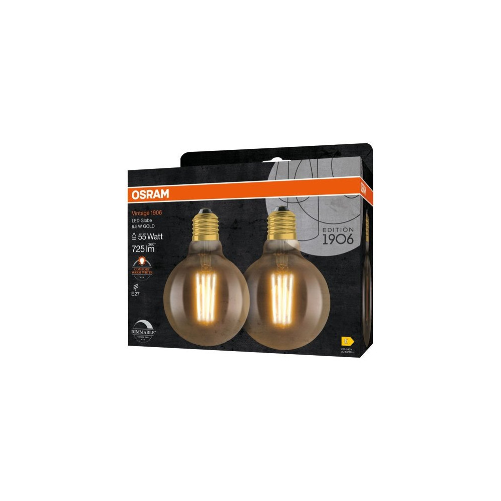 OSRAM - 1906 globe 95mm clair filament variable or 6.5w e27 chaud b