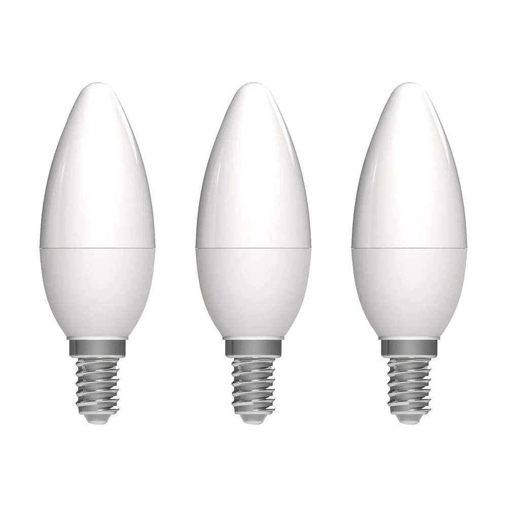 Pratique et économique, ce lot de 3 ampoules LED Flamme E14 3,4 W Blanc Chaud PROLIGHT est conçu pour remplacer avantageusement les ampoules halogènes et à incandescence dans vos lustre, appliques, lampadaires et bougeoirs électriques. Avec une puissance de 3,4 W seulement pour un flux lumineux de 470 lumens, elles offrent un rapport performance/consommation remarquable.
