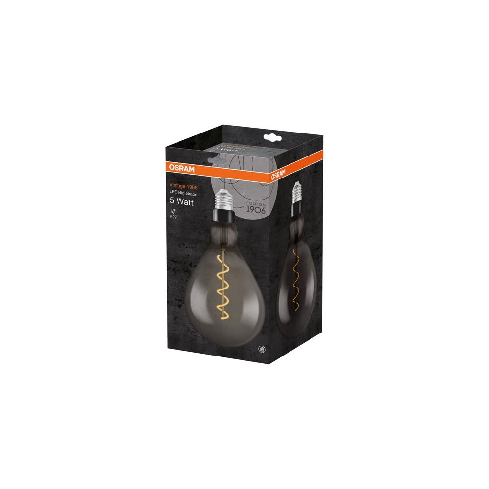 Sobre et authentique, l'ampoule LED filament standard OSRAM Edition 1906 revisite le style des ampoules vintage avec une finition smoke qui tamise délicatement la lumière du filament visible. Elle apporte une touche d'originalité à tout luminaire ouvert, tout en restant très économe en énergie.