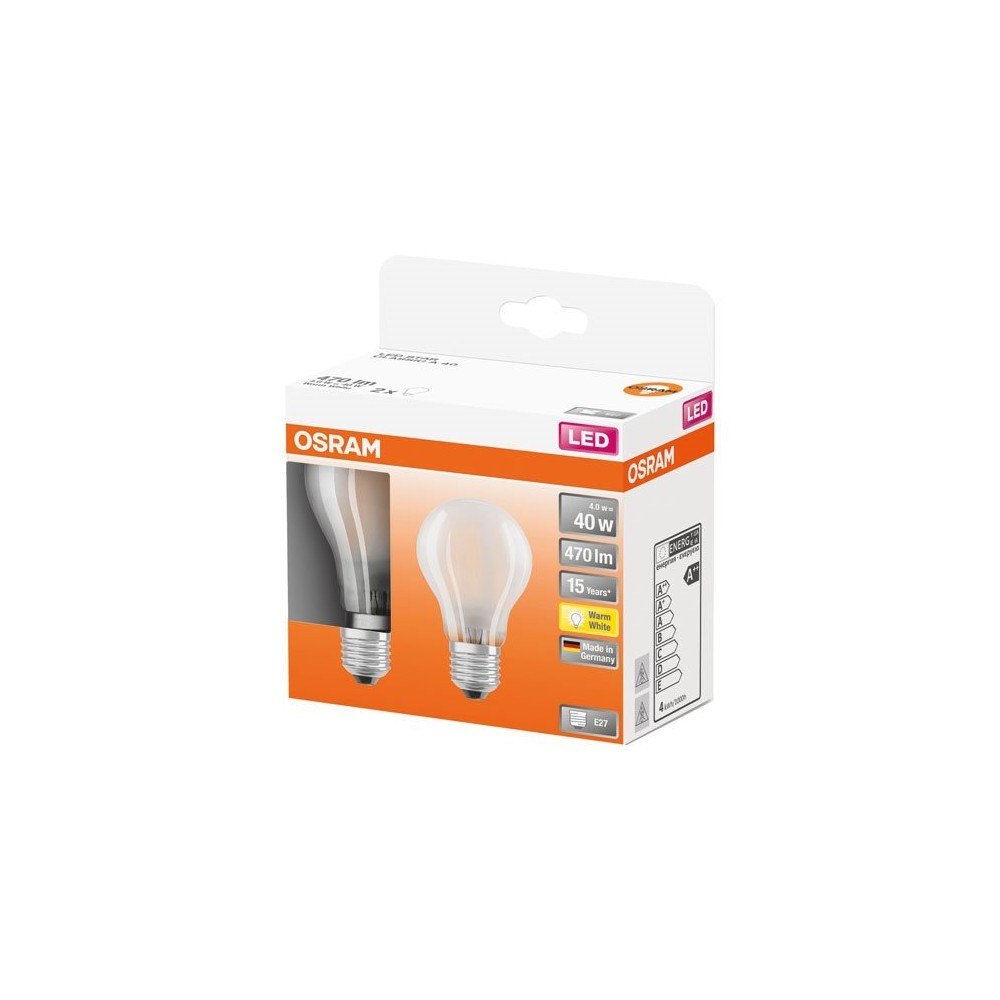 Le lot de 2 ampoules LED standard Full Glass OSRAM 4W E27 blanc chaud marie élégance et efficacité énergétique dans un format compact et raffiné. Affichant 470 lumens pour seulement 4W consommés, ces ampoules offrent un excellent rendement lumineux pour un usage quotidien, dans une lumière à 2700K qui reproduit fidèlement la chaleur des ampoules incandescentes traditionnelles.