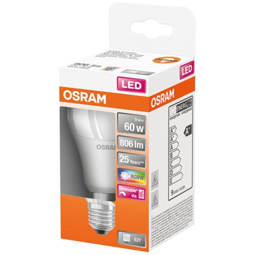 Bien plus qu'une simple ampoule, l'OSRAM LED Star Standard RGBW Dépolie 9W E27 lumière chaude ouvre la voie à un éclairage personnalisé et connecté. Grâce à sa technologie RGBW (rouge, vert, bleu, blanc chaud), elle permet de créer une infinité de teintes et d'ambiances lumineuses, du blanc chaud apaisant aux couleurs vives les plus dynamiques.
