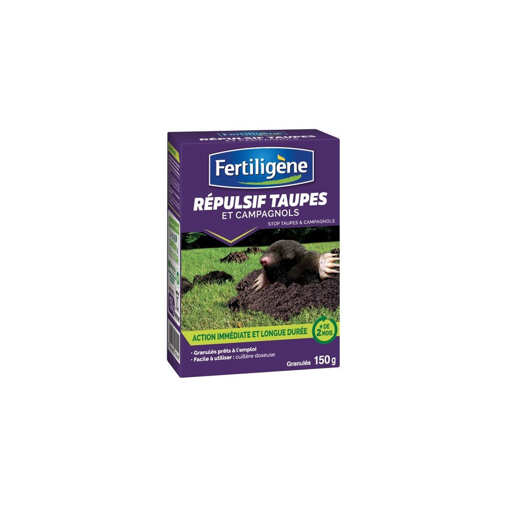 Protégez efficacement votre jardin avec l'anti-taupes et campagnols en granulés PAE Fertiligène en format 150 g. Ce répulsif nouvelle génération offre une action rapide et prolongée pour éloigner durablement ces animaux nuisibles qui ravagent pelouses, potagers et plates-bandes sans recourir à des méthodes dangereuses.