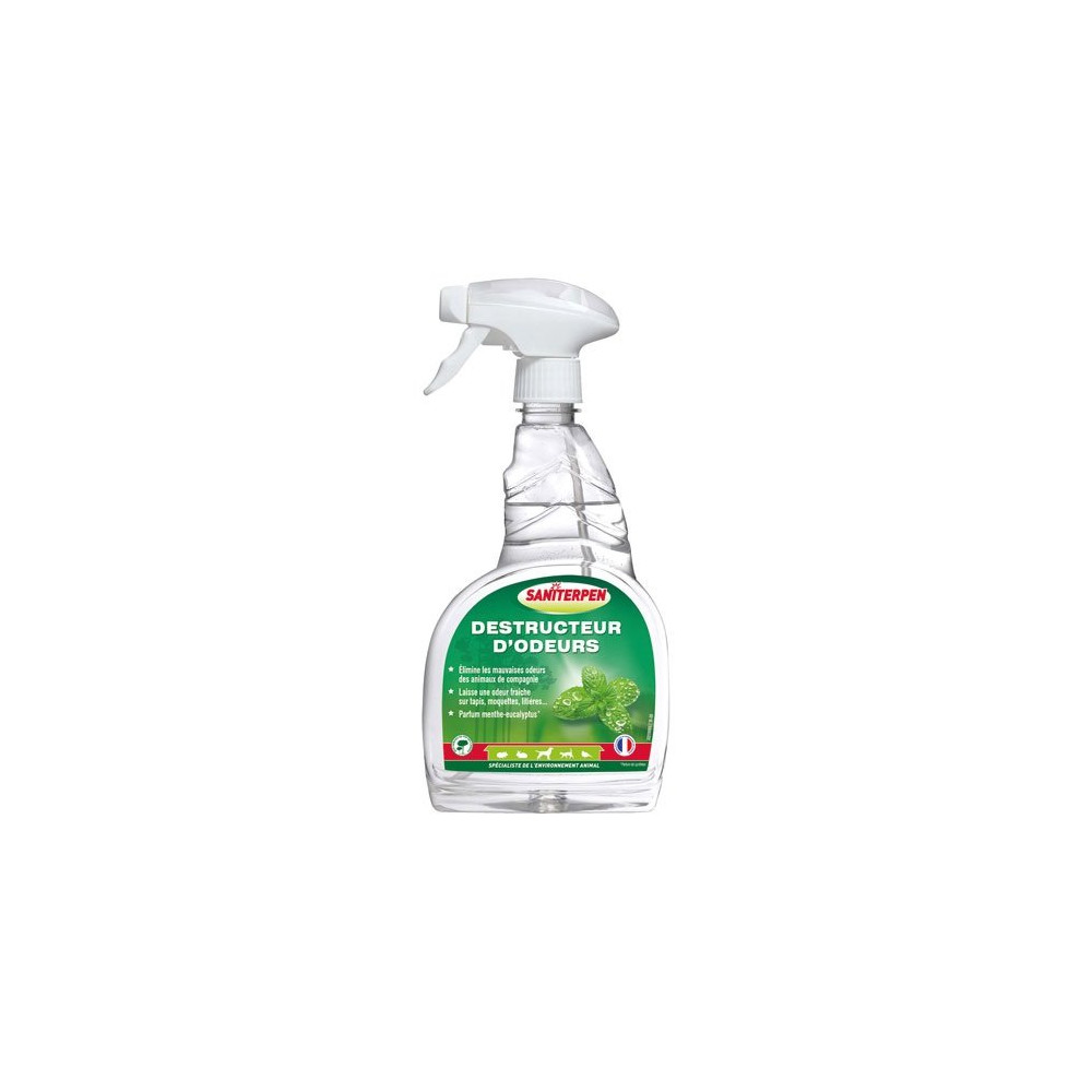 Fini les mauvaises odeurs tenaces de vos animaux de compagnie ! Le Destructeur d'Odeurs Saniterpen 750ml est une formulation innovante qui éradique instantanément les odeurs fortes et imprégnées, même les plus persistantes, tout en laissant un parfum frais et naturel menthe-eucalyptus agréable au quotidien. Son action n'est pas un simple masquage : il neutralise les molécules odorantes à la source.