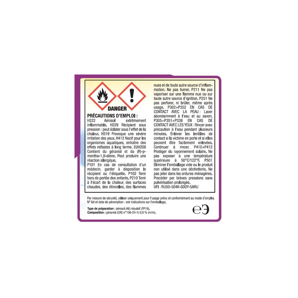 Avec son format aérosol 500 ml, il est facile à appliquer sur les zones à traiter : végétation environnante, mobilier de jardin, encadrements de fenêtres ou abords de terrasse. Son action à effet rapide éloigne les insectes dès la première pulvérisation, et sa protection se prolonge plusieurs jours selon les conditions climatiques. Un parfum agréable remplace les odeurs chimiques souvent associées aux répulsifs classiques.