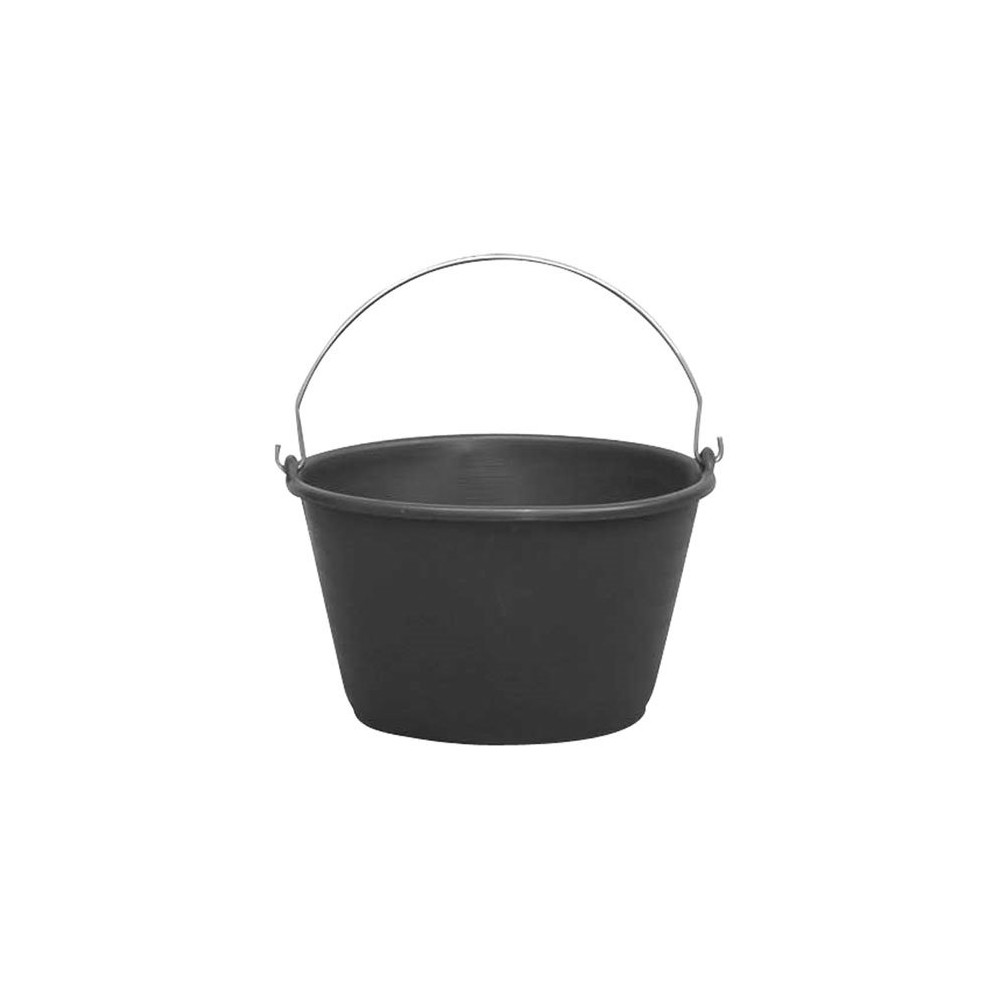 Sa conception repose sur des matériaux éprouvés : le corps en plastique solide coloris noir garantit durabilité et résistance aux chocs, tandis que l'anse en métal assure une prise en main ferme et sécurisée même lors des manipulations répétées. La contenance de 16 litres est idéalement dimensionnée pour les rations journalières des jeunes bovins.