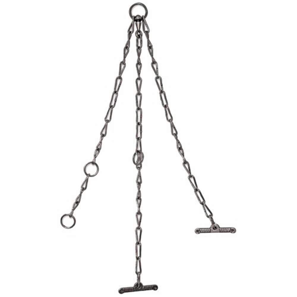 Ce modèle se compose de 3 brins de longueurs différentes : 80 cm, 68 cm et 65 cm, permettant différentes configurations d'attache selon les besoins spécifiques de l'exploitation. La finition en acier zingué assure une bonne résistance à la corrosion, indispensable pour un équipement utilisé en extérieur dans des conditions climatiques variées. Le brin principal mesure 65 cm dans sa configuration courte.