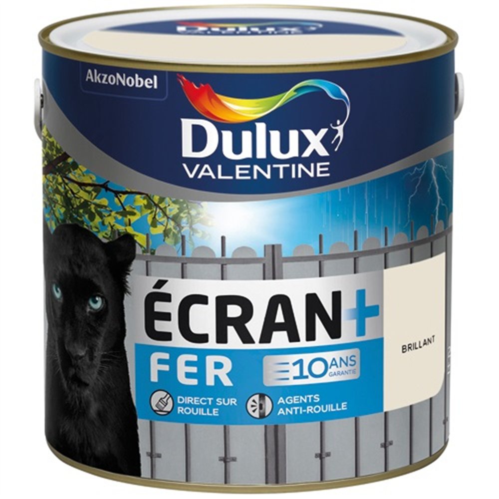 Écran Fer Brillant Dulux Valentine en blanc crème est une peinture antirouille haute performance spécialement formulée pour protéger durablement vos supports métalliques extérieurs. Disponible en pot de 2 litres, cette teinte blanc crème apporte une finition lumineuse et élégante à vos portails, grilles, garde-corps, mobilier de jardin et autres ouvrages en métal exposés aux éléments.